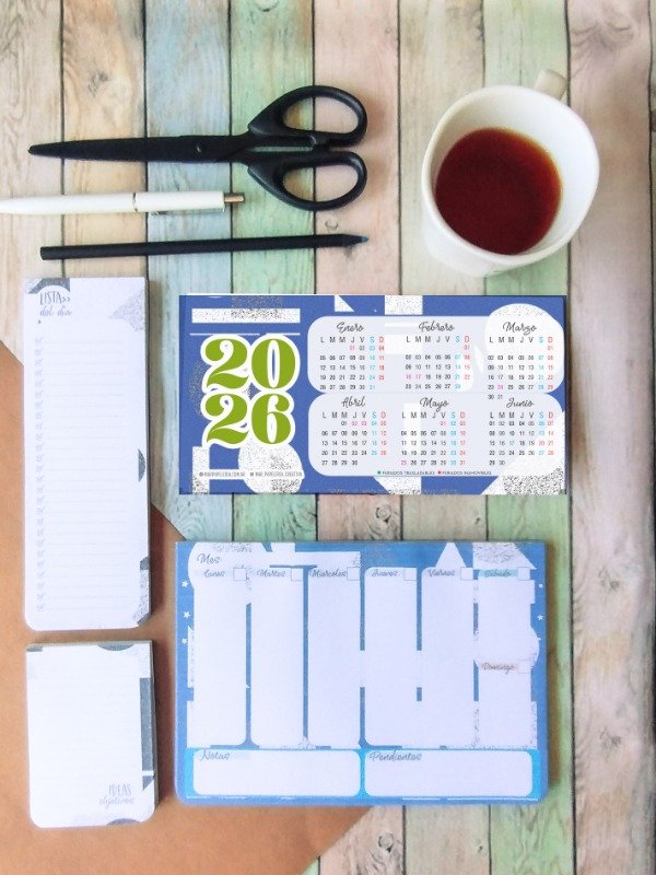 Calendario de escritorio tipo carpa (año en curso)