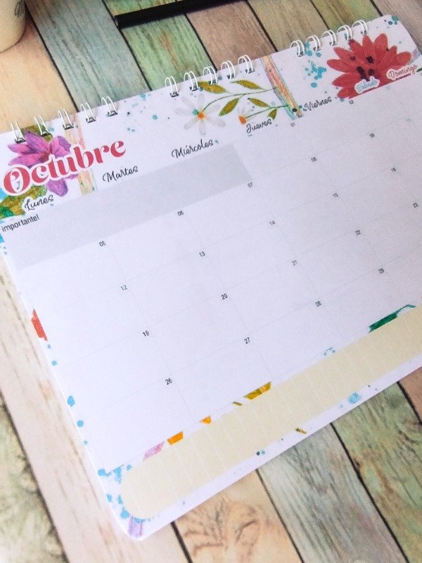 Tiene en total 12 páginas, el diagrama fechado de cada mes y el el dorso espacio para notas complementarias. Está impreso en papel de 150grs para que realmente te acompañe todo el mes sin deteriorarse.